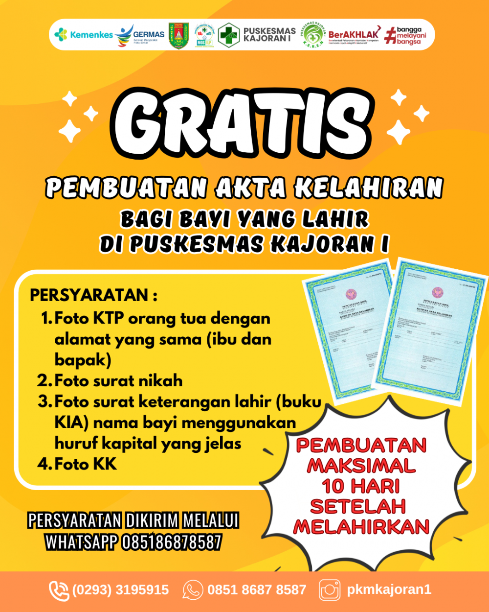 Gratis Pembuatan Akta Kelahiran bagi Bayi yang Lahir di Puskesmas Kajoran I